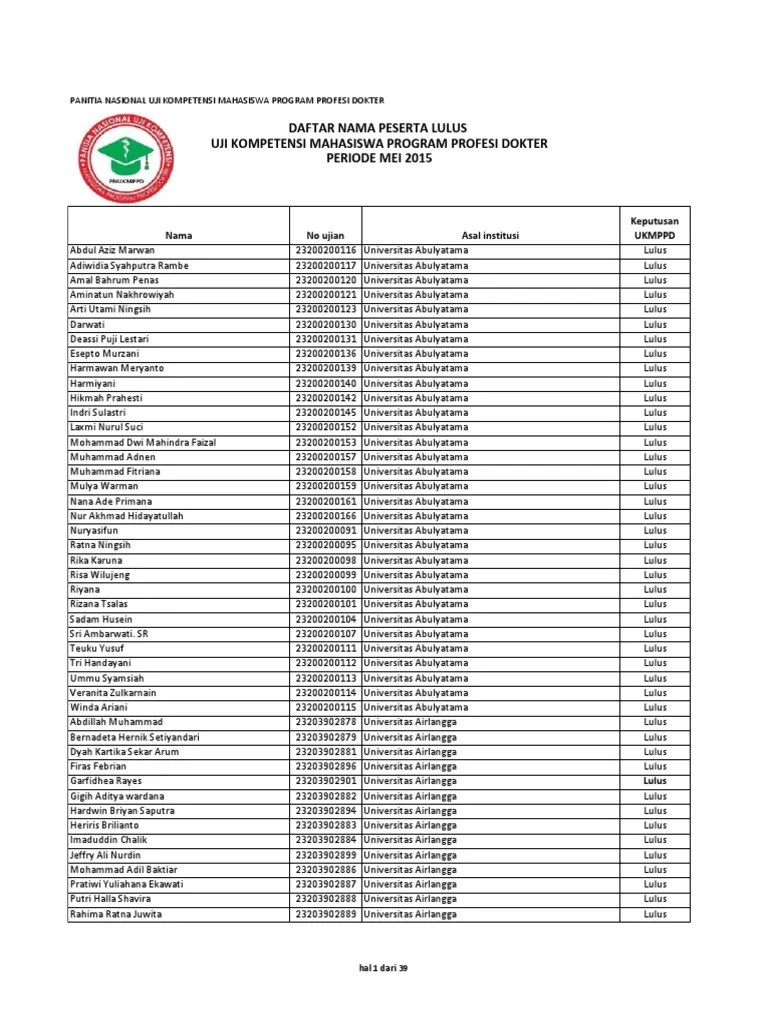 Bersama surat ini kami memberitahukan hasil try out cbt uji kompetensi mahasiswa program profesi. Calon mahasiswa pspd maret dan mei 2021. Puji syukur kepada tuhan yang maha esa yang telah memberikan ridhlonya . Pengumuman hasil utb periode juni 2020. Beberapa pengumuman berkaitan dengan pengumuman kelulusan ukmppd periode mei 2015 :